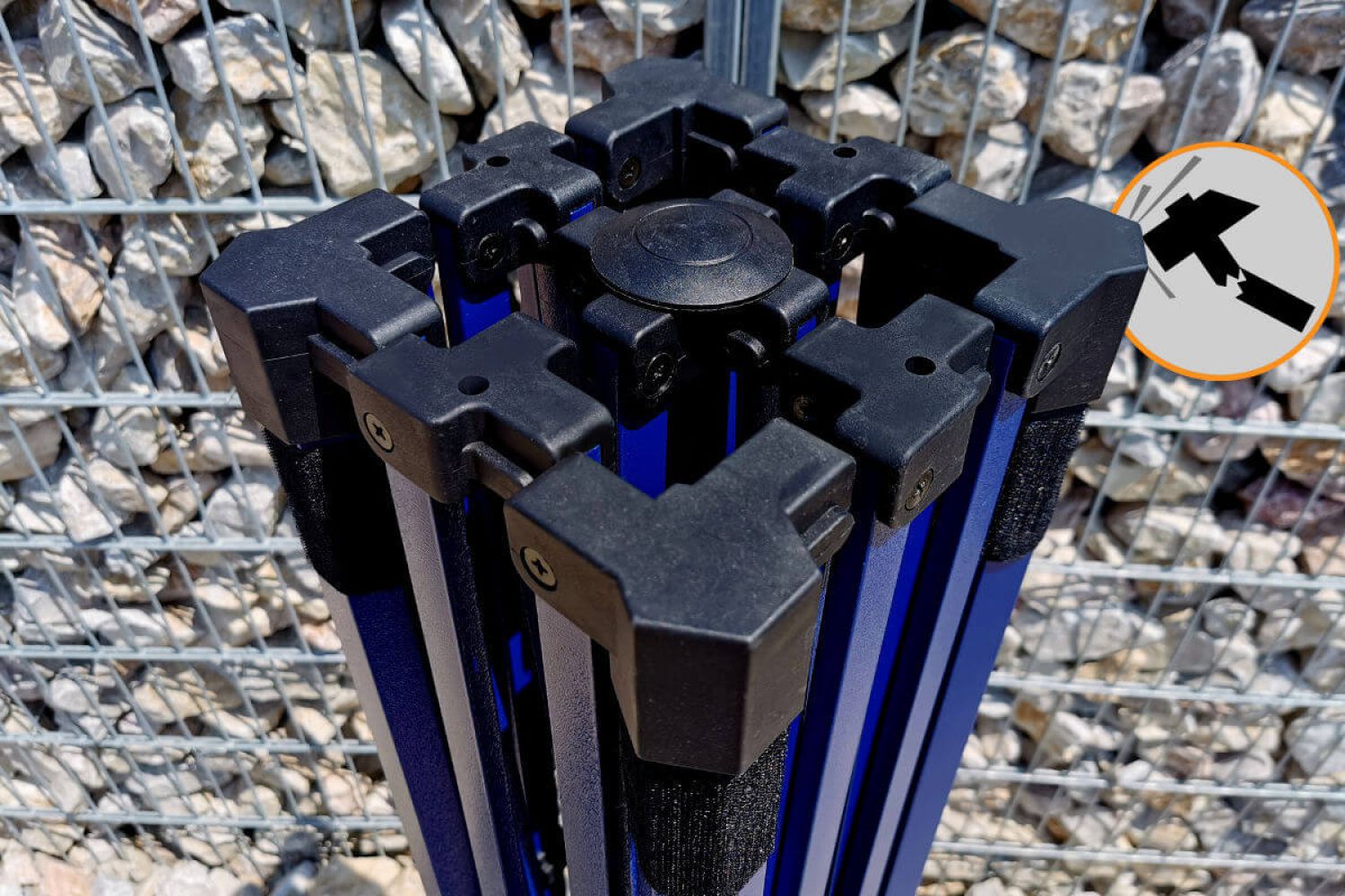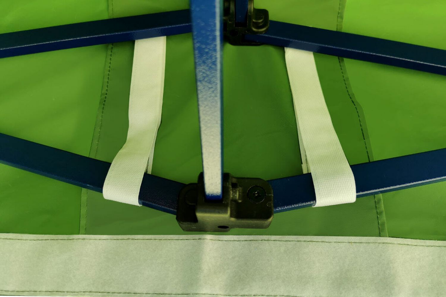 As conexões são parafusadas e, embora a estrutura da tenda seja difícil de danificar, nós fornecemos peças de reposição e serviço gratuito (mais informações nos termos gerais de venda). Para aumentar a rigidez da estrutura, usamos conectores de nylon de alta qualidade, que têm melhores propriedades do que os conectores de aço. Por isso, sua tenda não vai tremer nem fazer barulho.