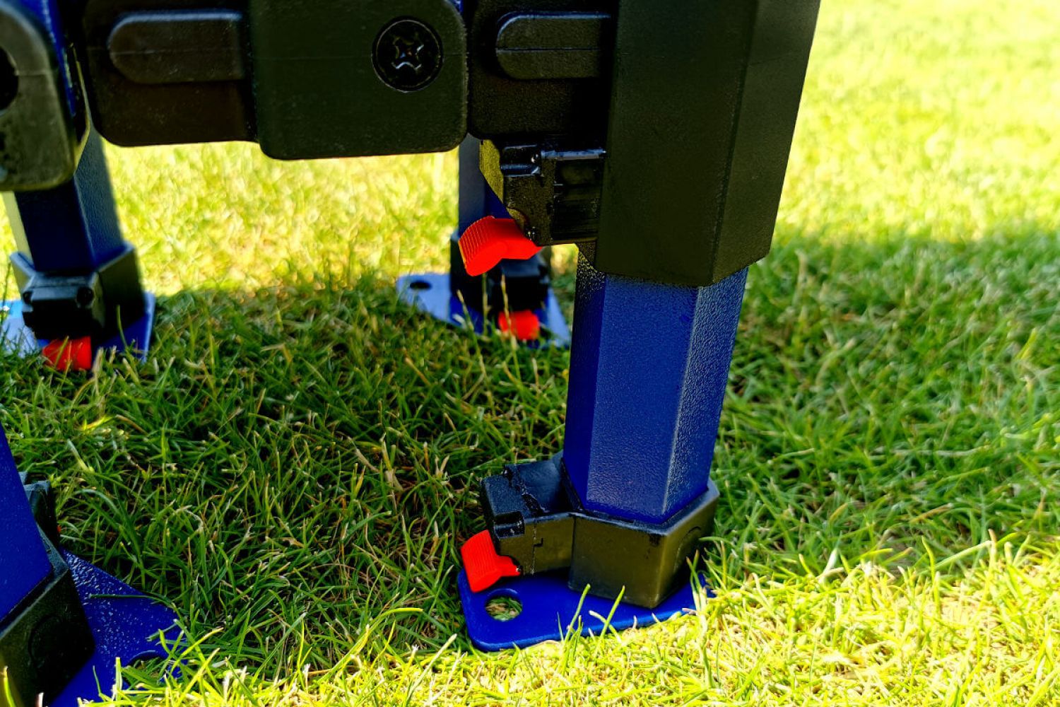 - Modelo Exclusive de aço utilizado com ventos até 60 km/h. Pernas com furos para fixação no solo com estacas – grátis!